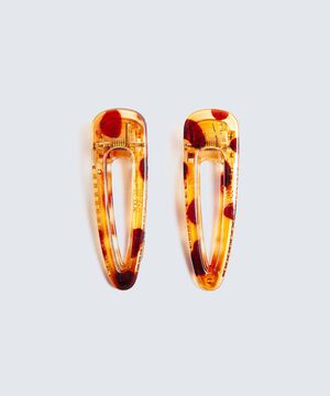 • Hebillas para mujer, forma triangular con un diseño de animal print de manchas.